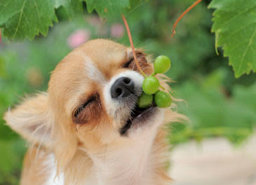 No , dogs shouldn't eat grapes at all , grapes are highly toxic for dogs even if your dog ate one grape it could kill it.